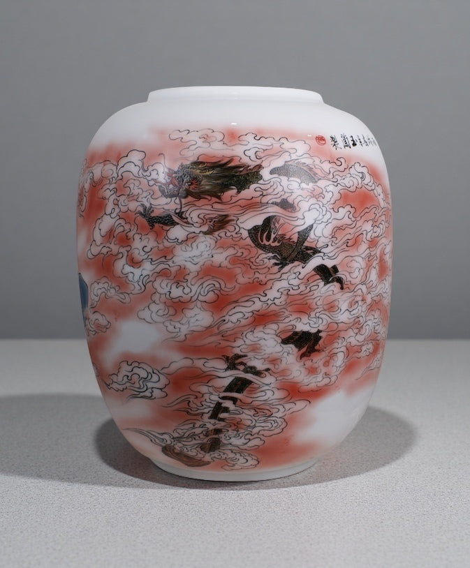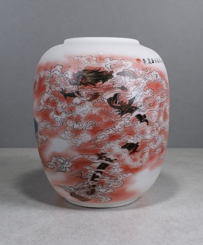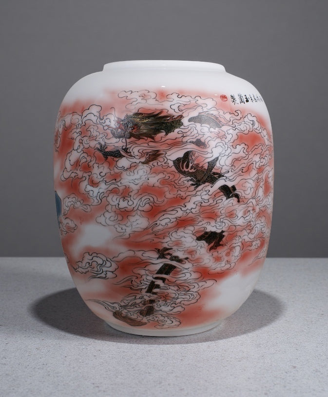 Handcrafted by ceramic art master Xiong Yulan, this piece embodies the spirit of "twin dragons emerging from clouds." The dragons’ scales are carved with knife-like precision, their whiskers swirling through crimson mists, evoking the classical philosophy of "divine dragons revealing only glimpses of their majesty."
