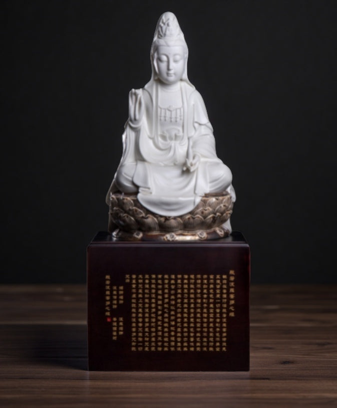 【Master Nie Lei’s Porcelain Sculpture: Avalokitesvara on Lotus Throne】