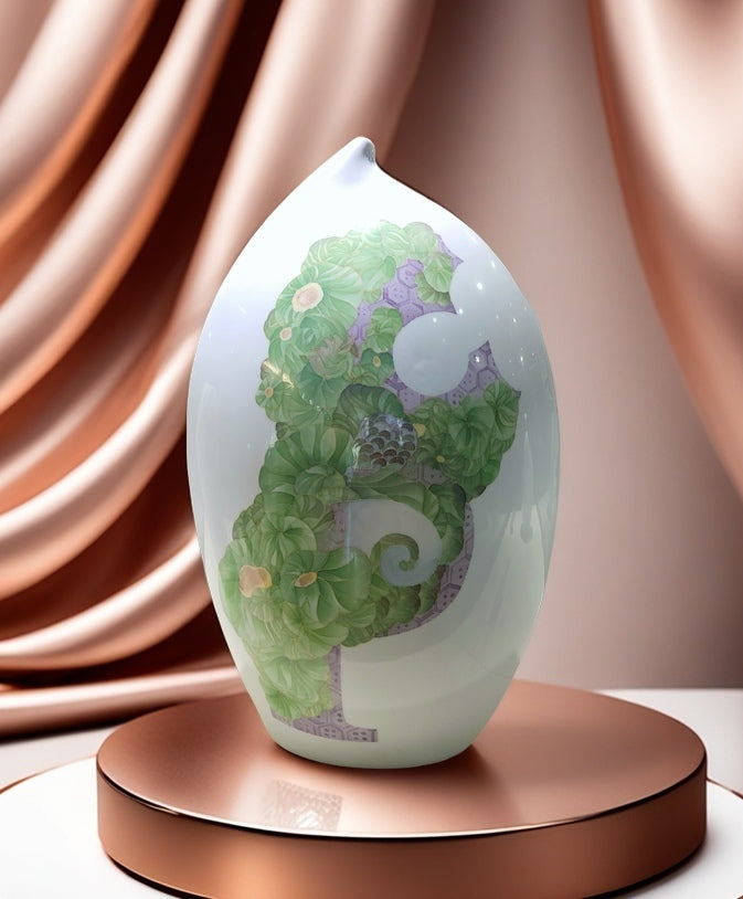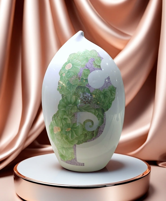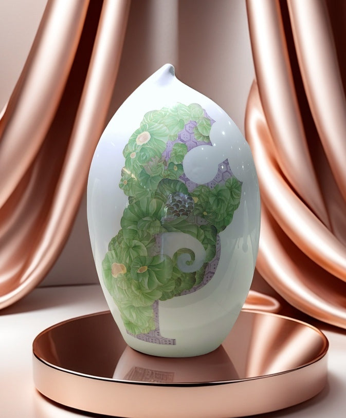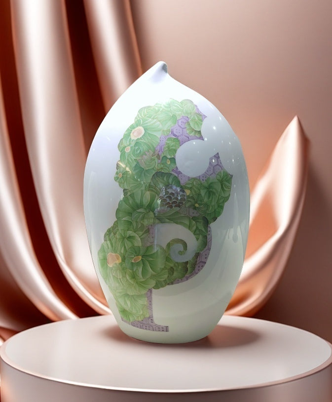 Standing at 58 cm in height, this ceramic ornament is the fifth piece in the renowned [Blooming Alphabet Series], created by the celebrated ceramic artist Duan Yujie. Crafted using the time-honored underglaze five-color porcelain technique—a national intangible cultural heritage—each detail embodies the perfect fusion of masterful artistry and traditional craftsmanship.