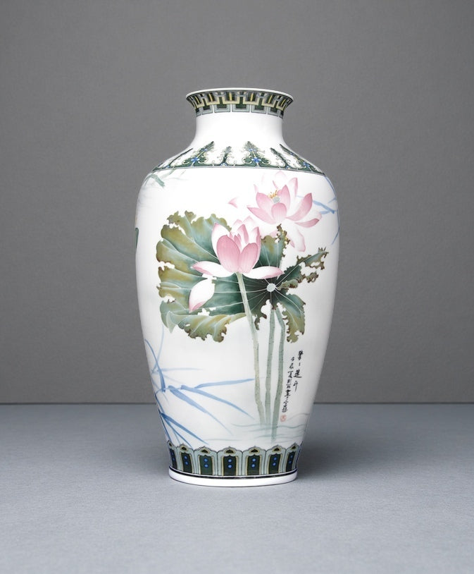 Master Yi Gangli's Exquisite Porcelain Vase: "Herons and Lotus Ascending"